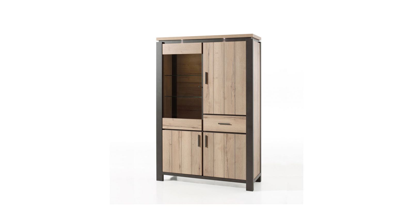 Vitrine 4 portes pleines - 1 tiroir - led